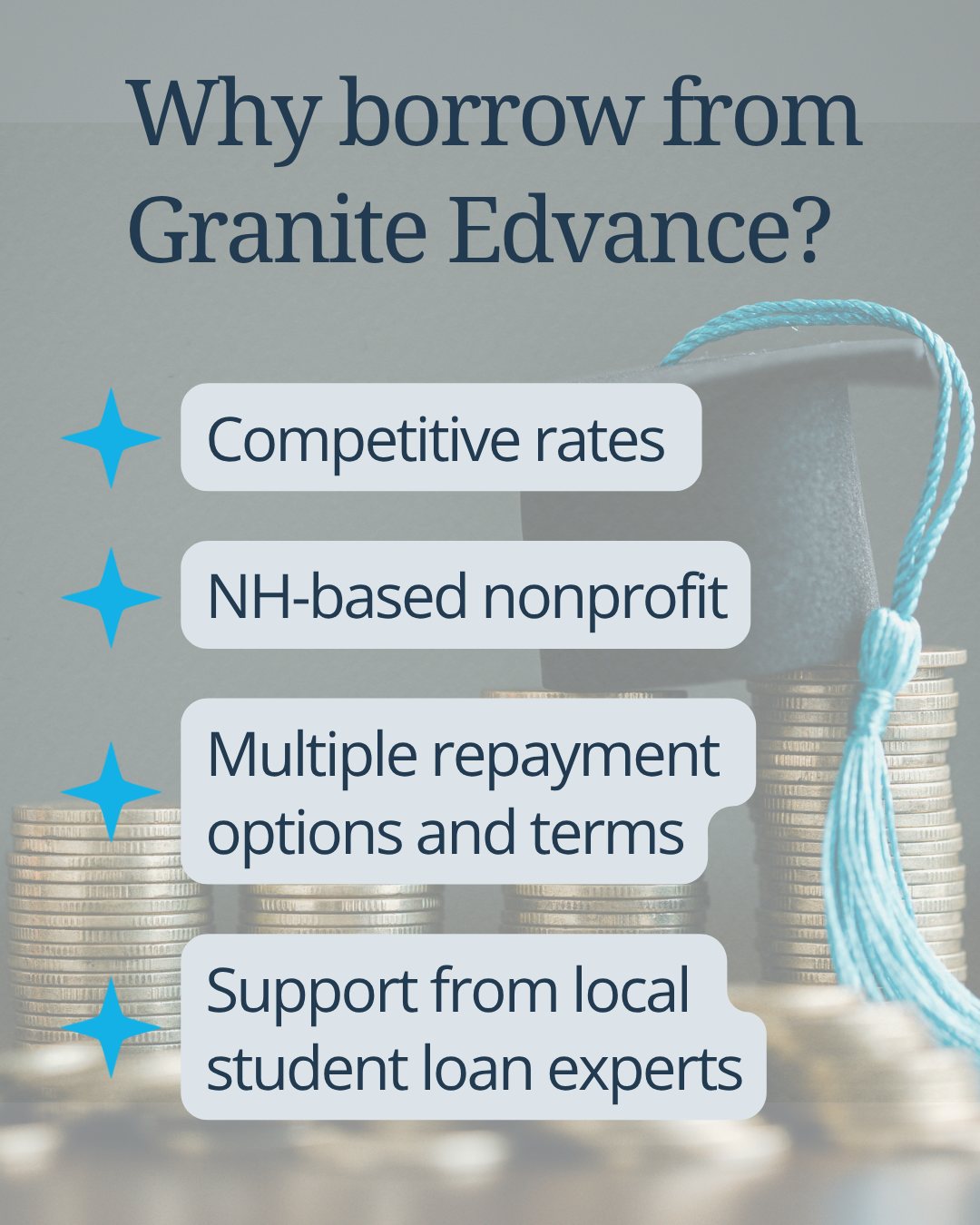 Subject to credit approval. Loans may be made by Granite Edvance or Bank of Lake Mills, member FDIC.